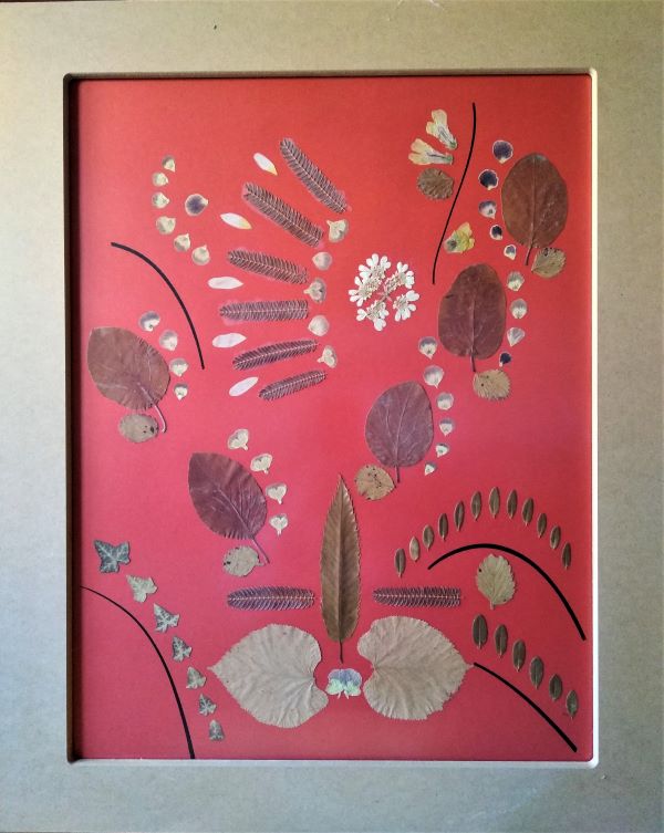 Πίνακας με αποξηραμένα φύλλα από κυδωνιά, κισσό, πουρνάρι, ροδομετάξη, καστανιά, πανσέδες, κολλιτσίδα, σκυλάκι. Διατίθεται με χειροποίητη ξύλινη κορνίζα και τζάμι.