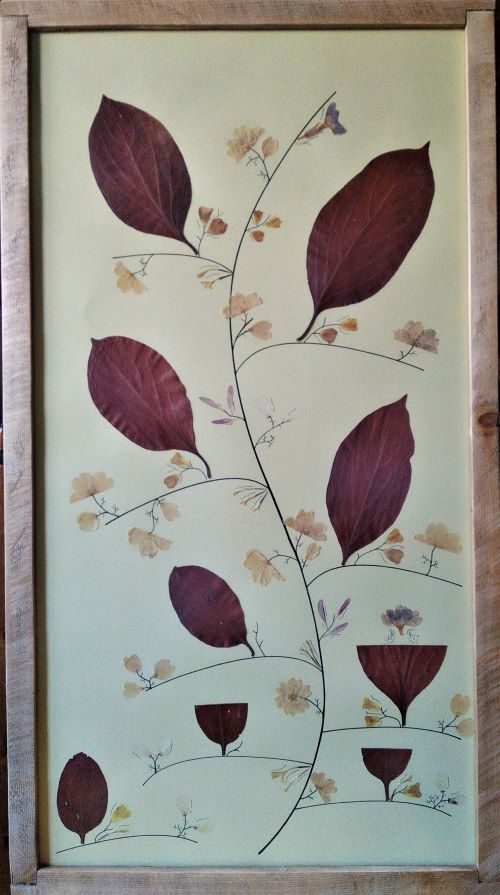 Πίνακας με αποξηραμένα φύλλα από λωτό και σινική μελάνη. Διατίθεται με χειροποίητη ξύλινη κορνίζα και τζάμι.